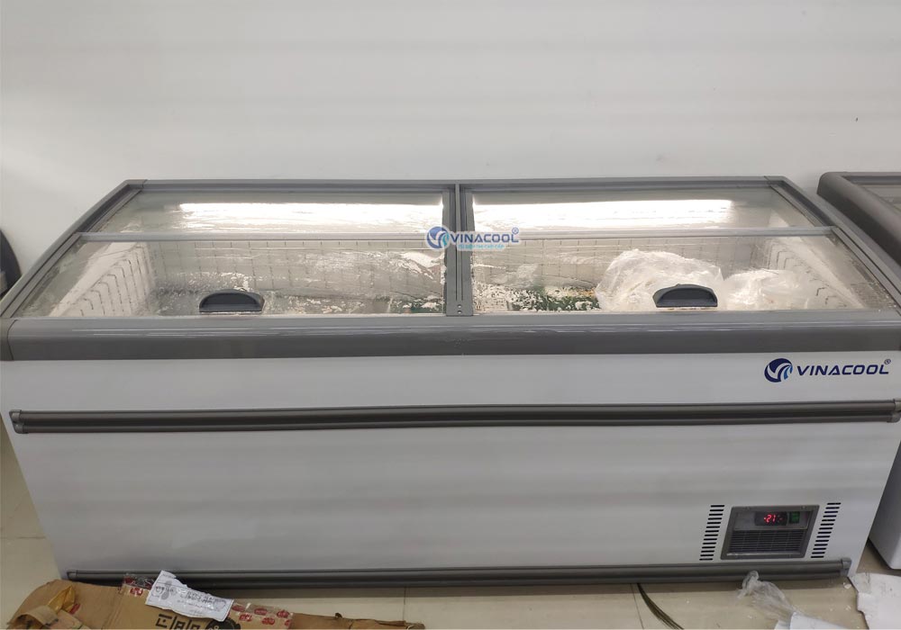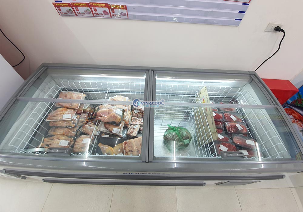 Đây là dòng tủ đông cửa kính vừa có chức năng bảo quản lạnh, vừa trưng bày thực phẩm giúp khách hàng dễ dàng quan sát, lựa chọn thực phẩm. Tủ có kích thước dài 2m1, thiết kế lòng tủ rộng, sâu tận dụng tối đa không gian giúp bảo quản được số lượng phẩm đông lạnh, hải sản tươi, thịt tươi sống nhiều nhất.