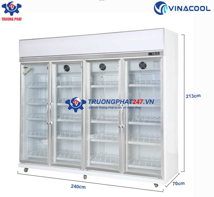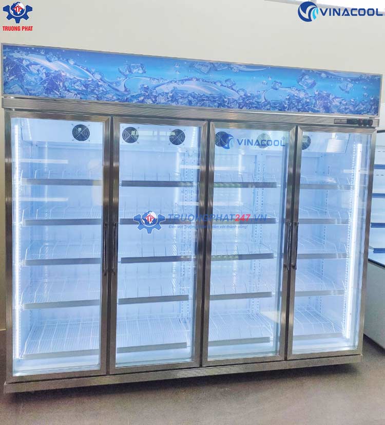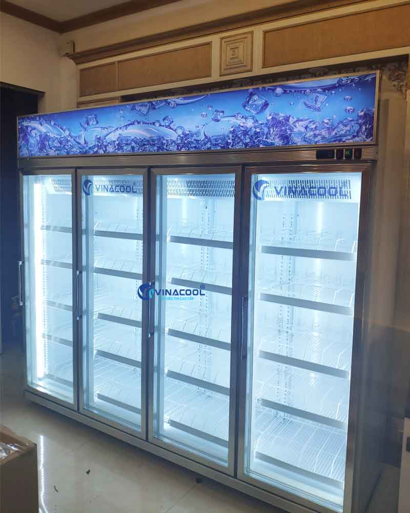 Tủ mát 4 cánh kính với thiết kế hiện đại tinh tế và dung tích lớn, khả năng làm lạnh hoàn hảo phù hợp cho các siêu thị không có điều hòa. Đây là một trong những dòng tủ bán chạy nhất của thương hiệu Vinacool.