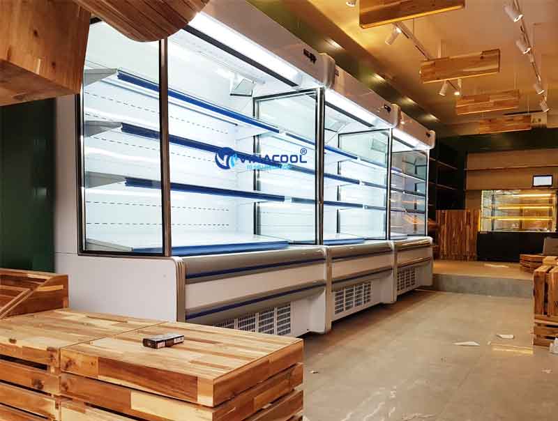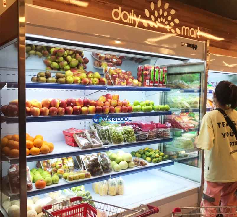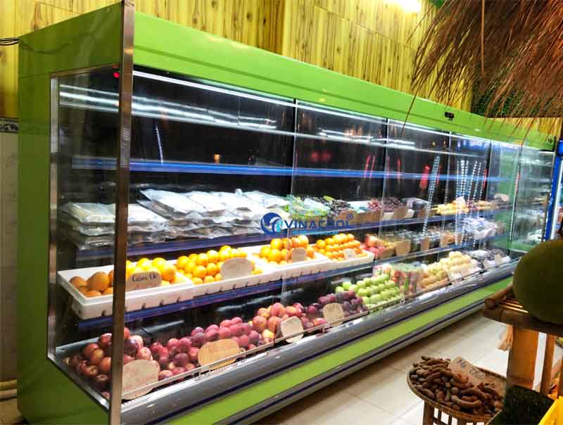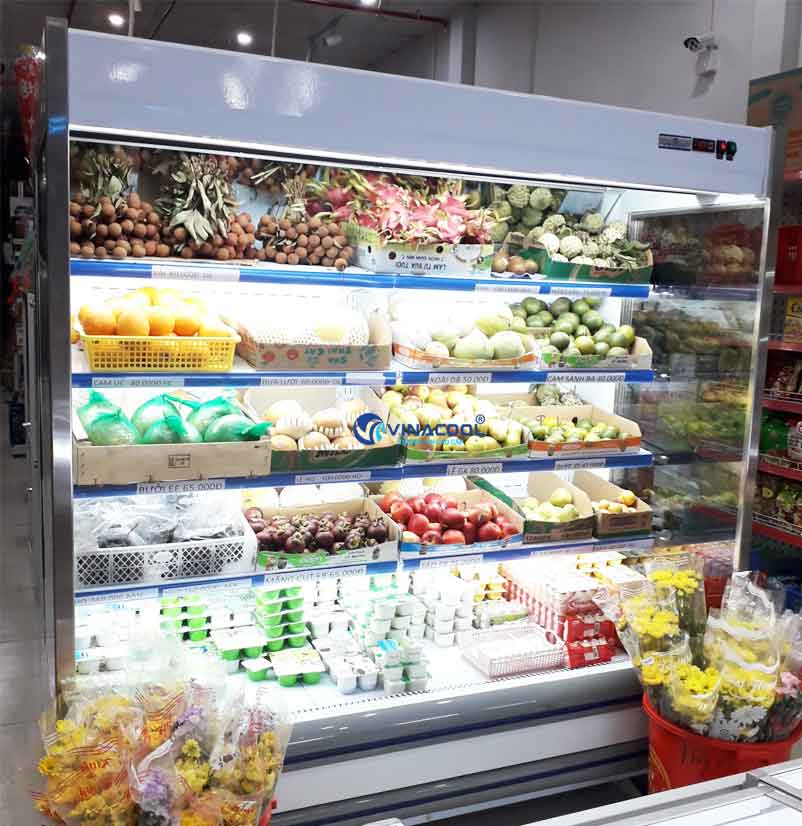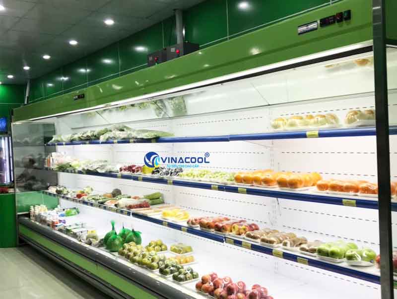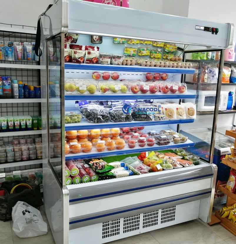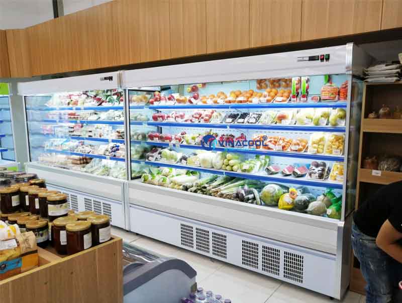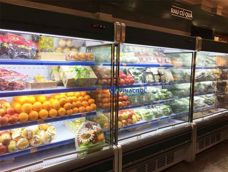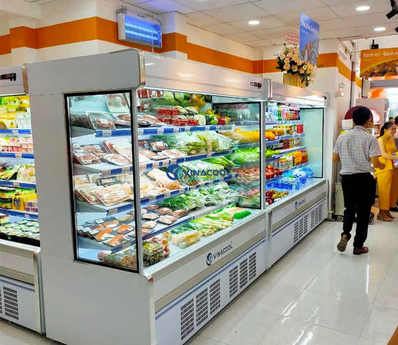 Tủ mát không cửa kính vuông được sử dụng nhiều để trưng bày các loại rau củ, trái cây, nước ngọt trong siêu thị, Minimart