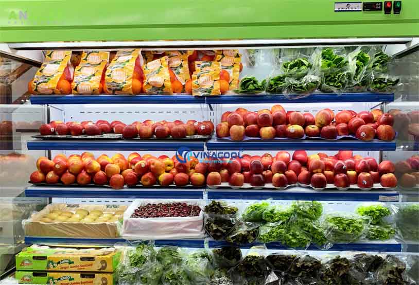 Với thiết kế hiện đại không cửa kính giúp khách hàng dễ dàng quan sát và lựa chọn thực phẩm. Nhiệt độ ổn định từ 2-8 độ giúp rau củ và các loại trái cây nhập khẩu được tươi lâu hơn