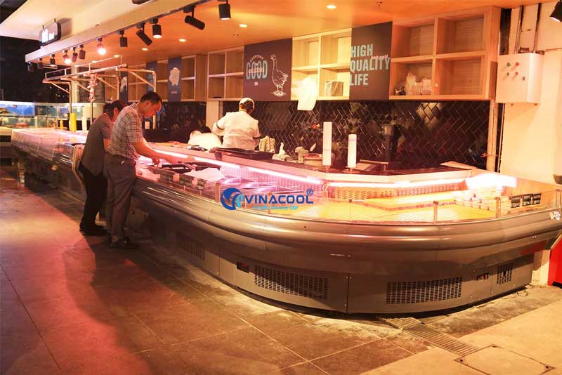 Tủ mát trưng bày thịt tươi cong góc Vinacool